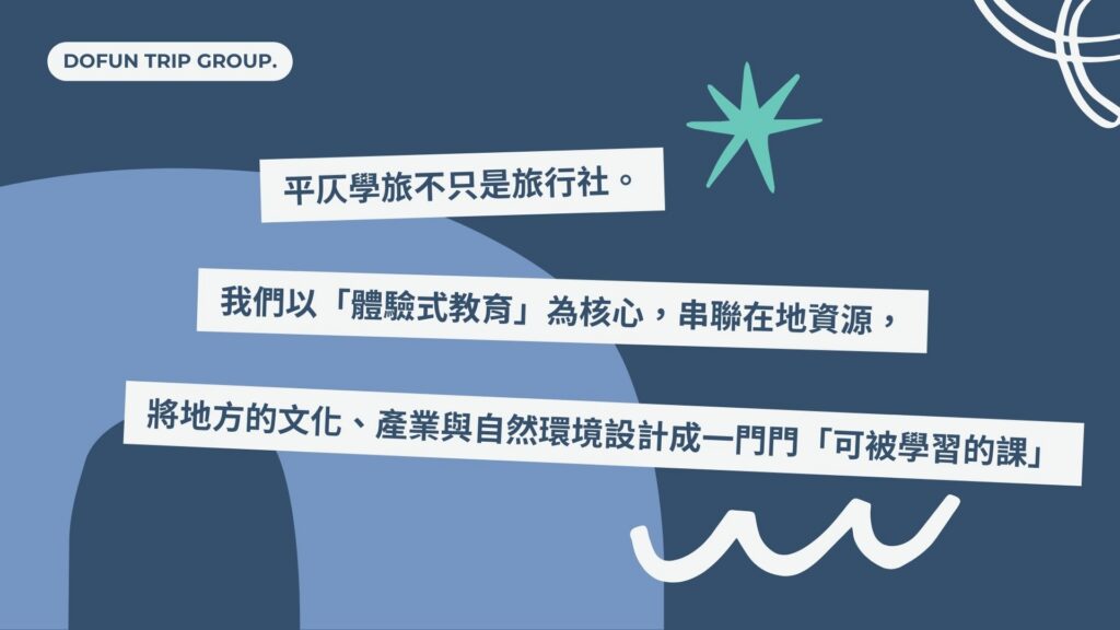 我們致力於串聯在地文化/獨特產業/組織單位等。整合資源設計成一門門「可被學習的課」,讓參與者深度融入當地生活脈動。